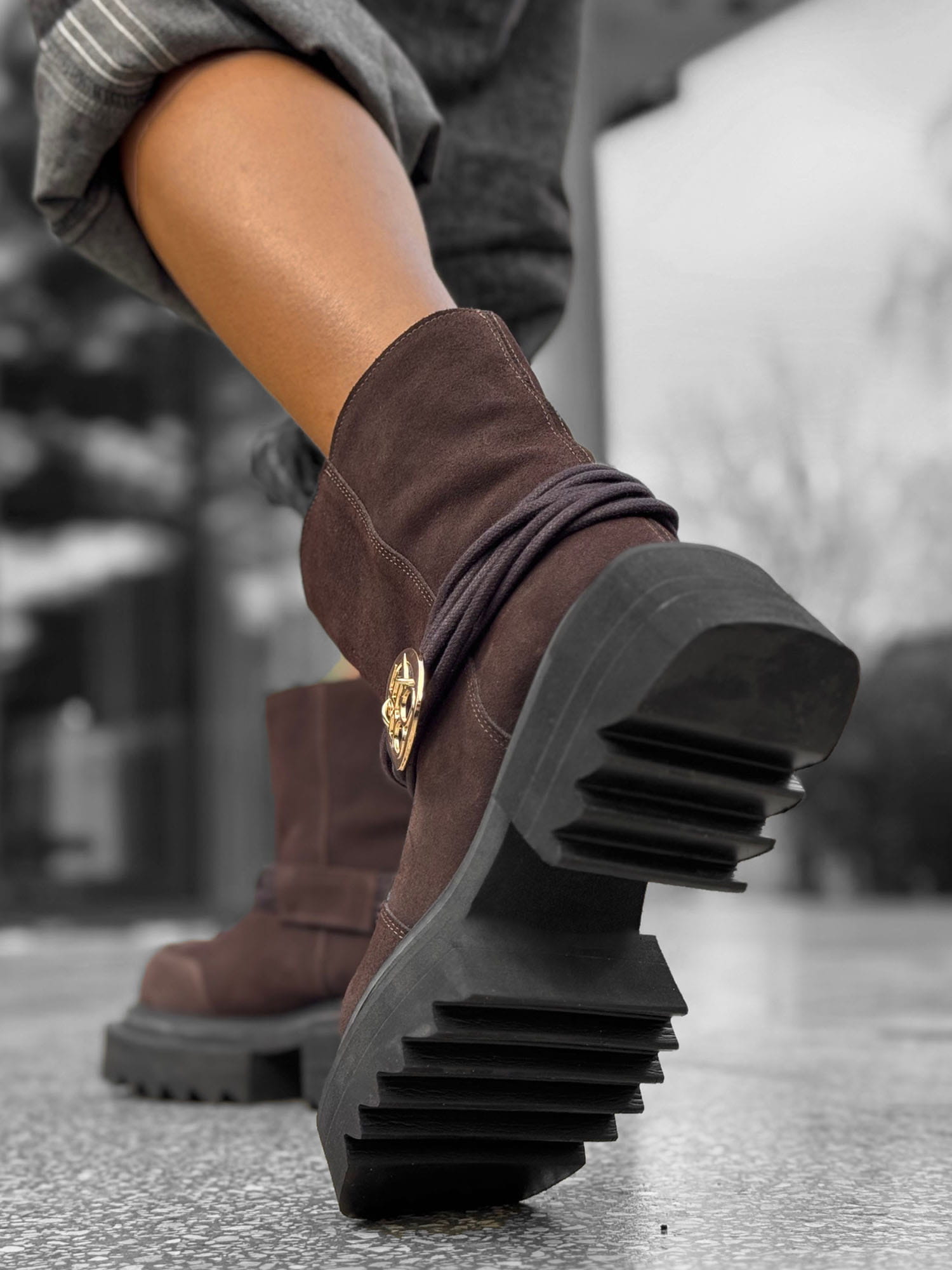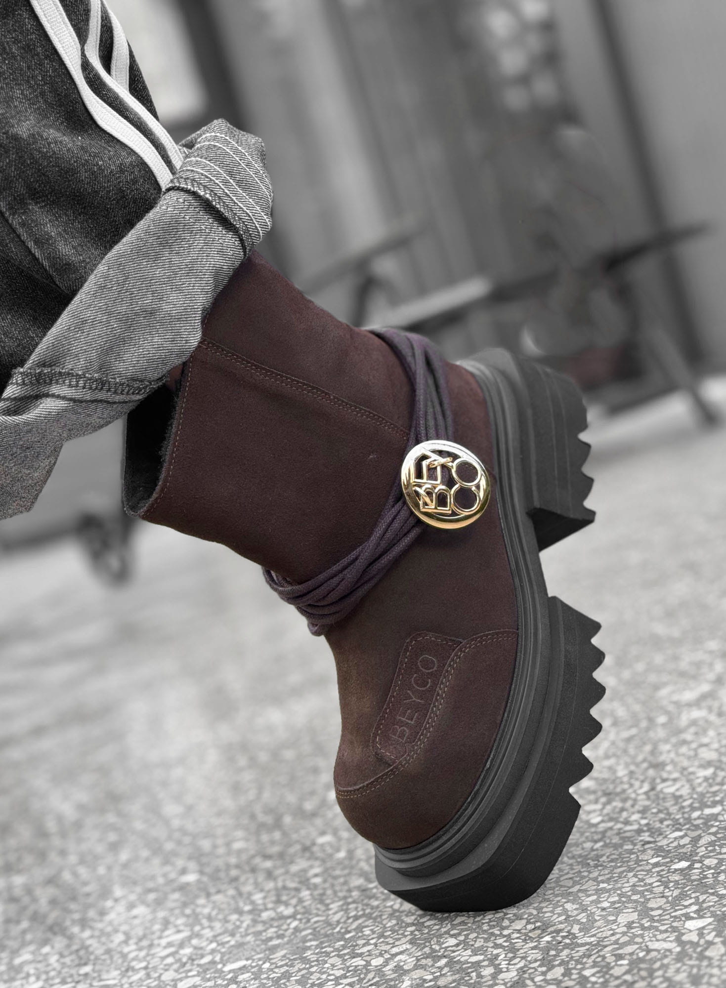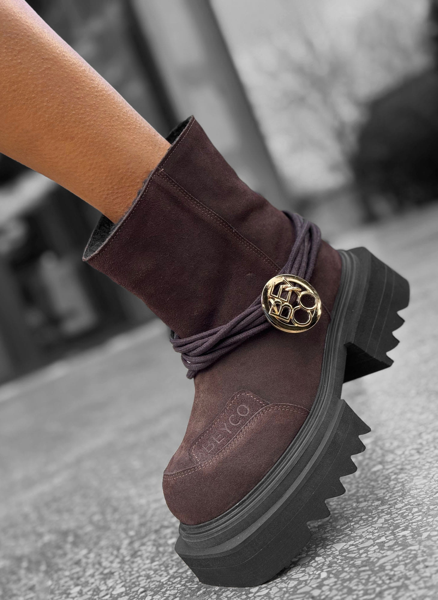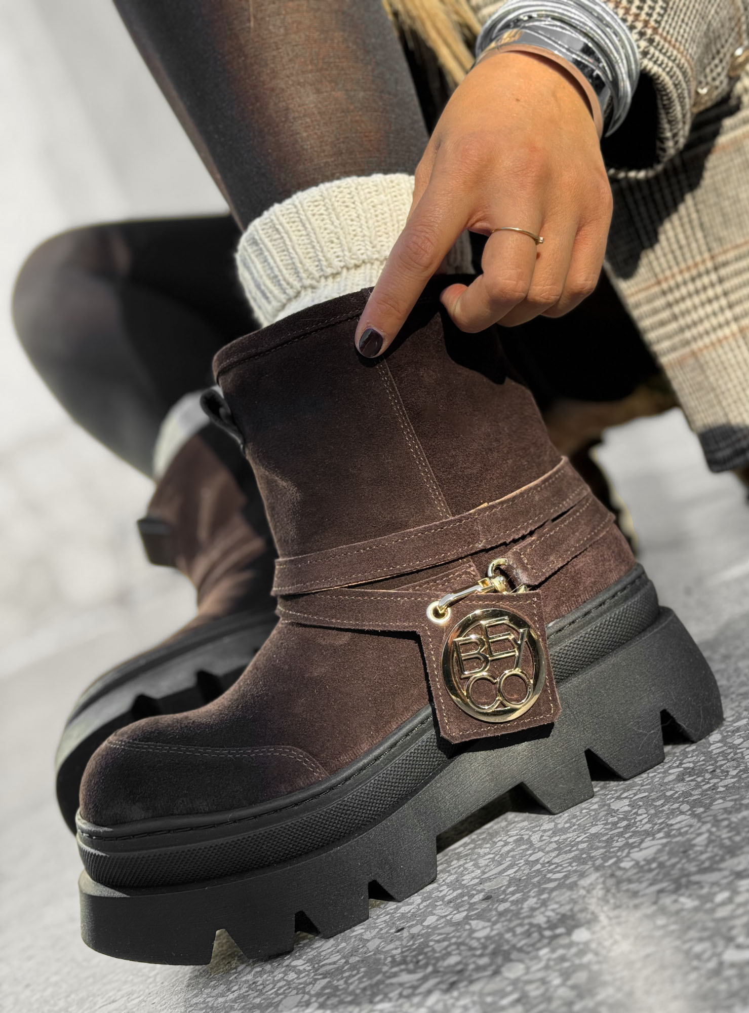 Botki na grubej podeszwie 24-1 to nowoczesna propozycja od Beyco. Najwyższej jakości zamszowa skóra naturalna w czekoladowym kolorze nadaje niepowtarzalny wygląd. Kozaki od Beyco to propozycja dla kobiet, które pragną wysmuklić swoją sylwetkę, a jednocześnie czuć się komfortowo.