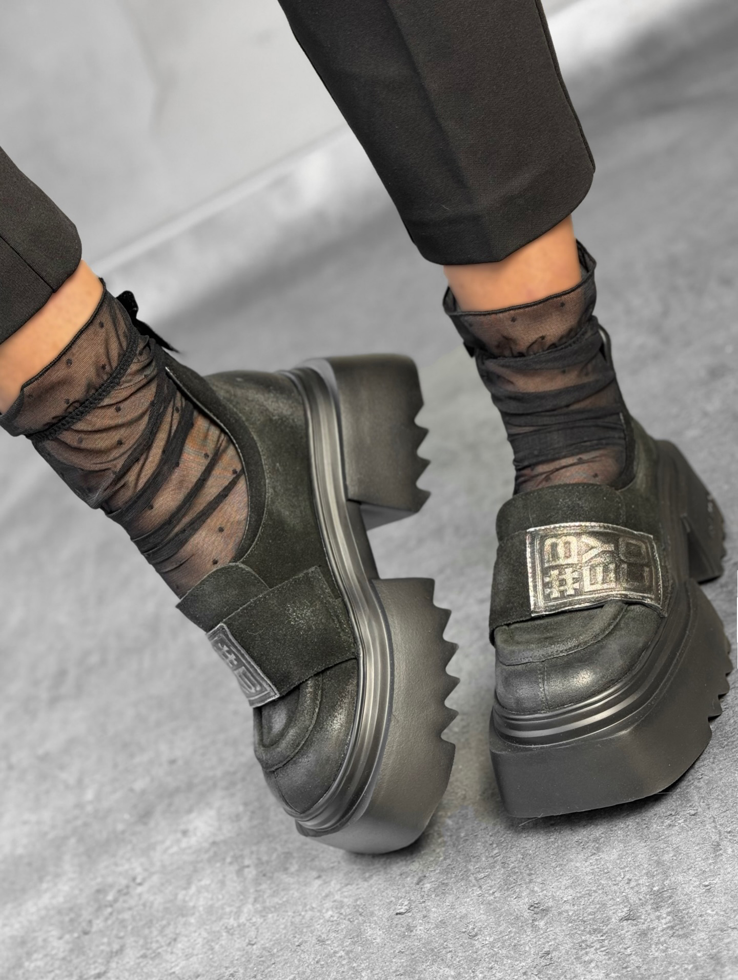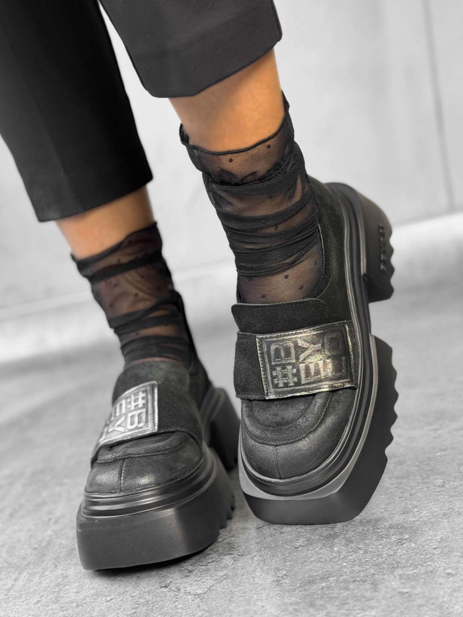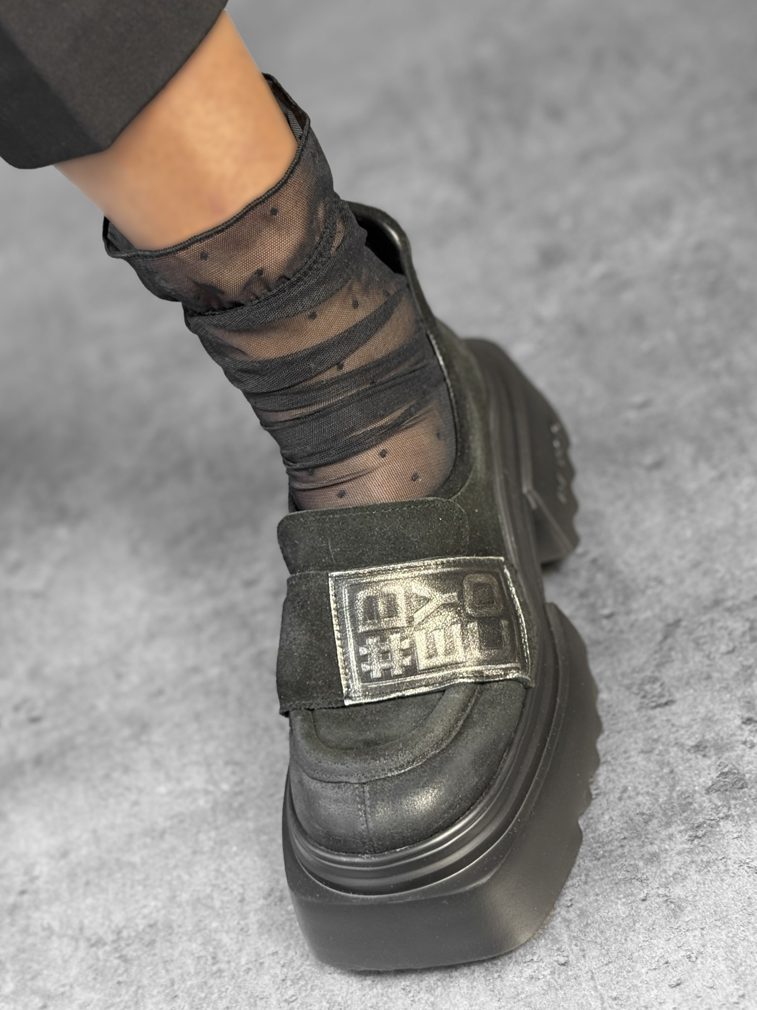 Czarne mokasyny 25-47 to połączenie sportowej funkcjonalności z casualowym stylem. Buty wykonane są z najwyższej jakości skóry naturalnej, co zapewnia im trwałość na lata. Gruba platforma dodaje im wyjątkowego charakteru, wysmukla sylwetkę i dodaje kilku centymetrów. Sneakersy idealne na co dzień. Doskonale wpiszą się w sportowy, miejski look.