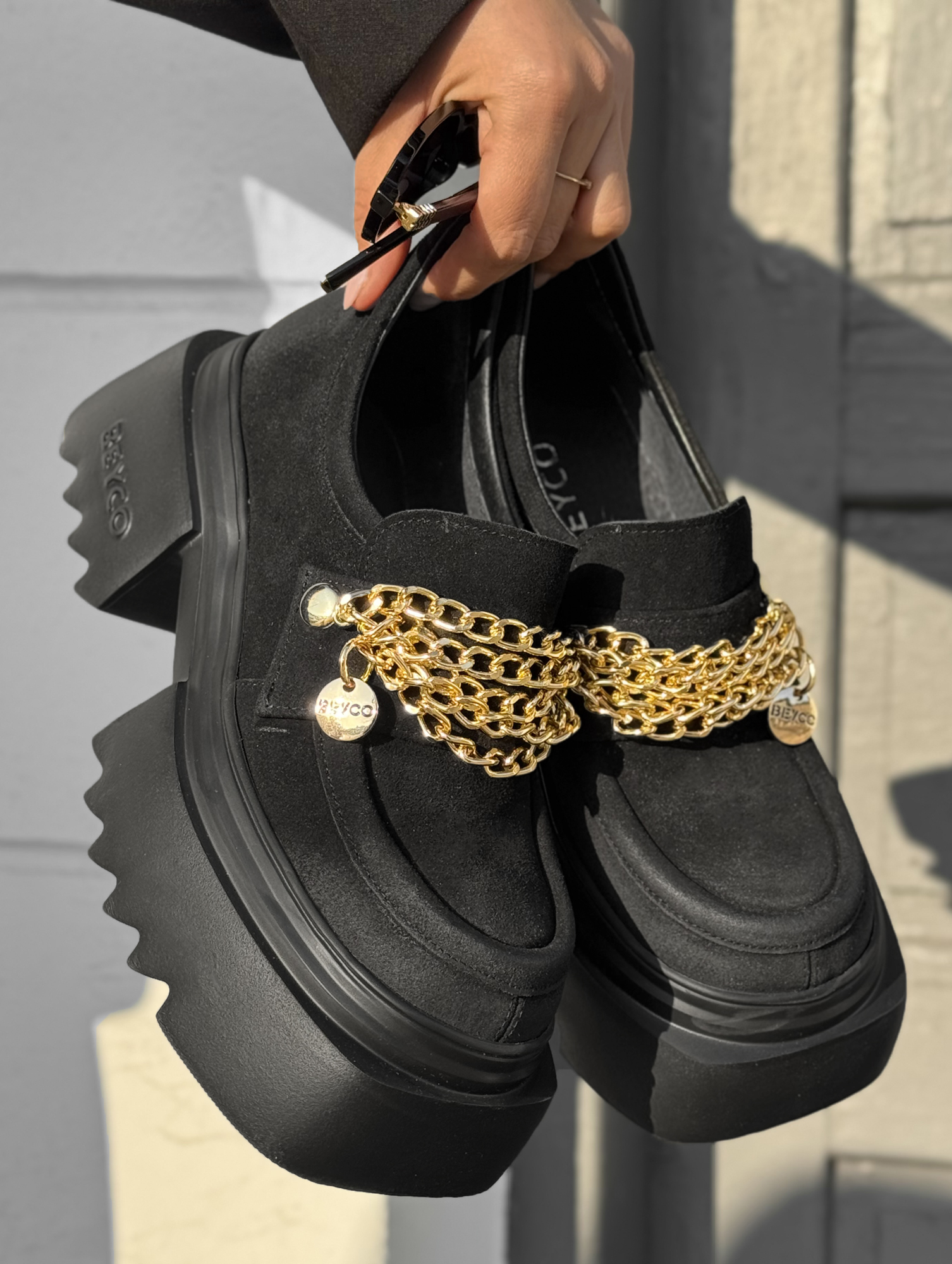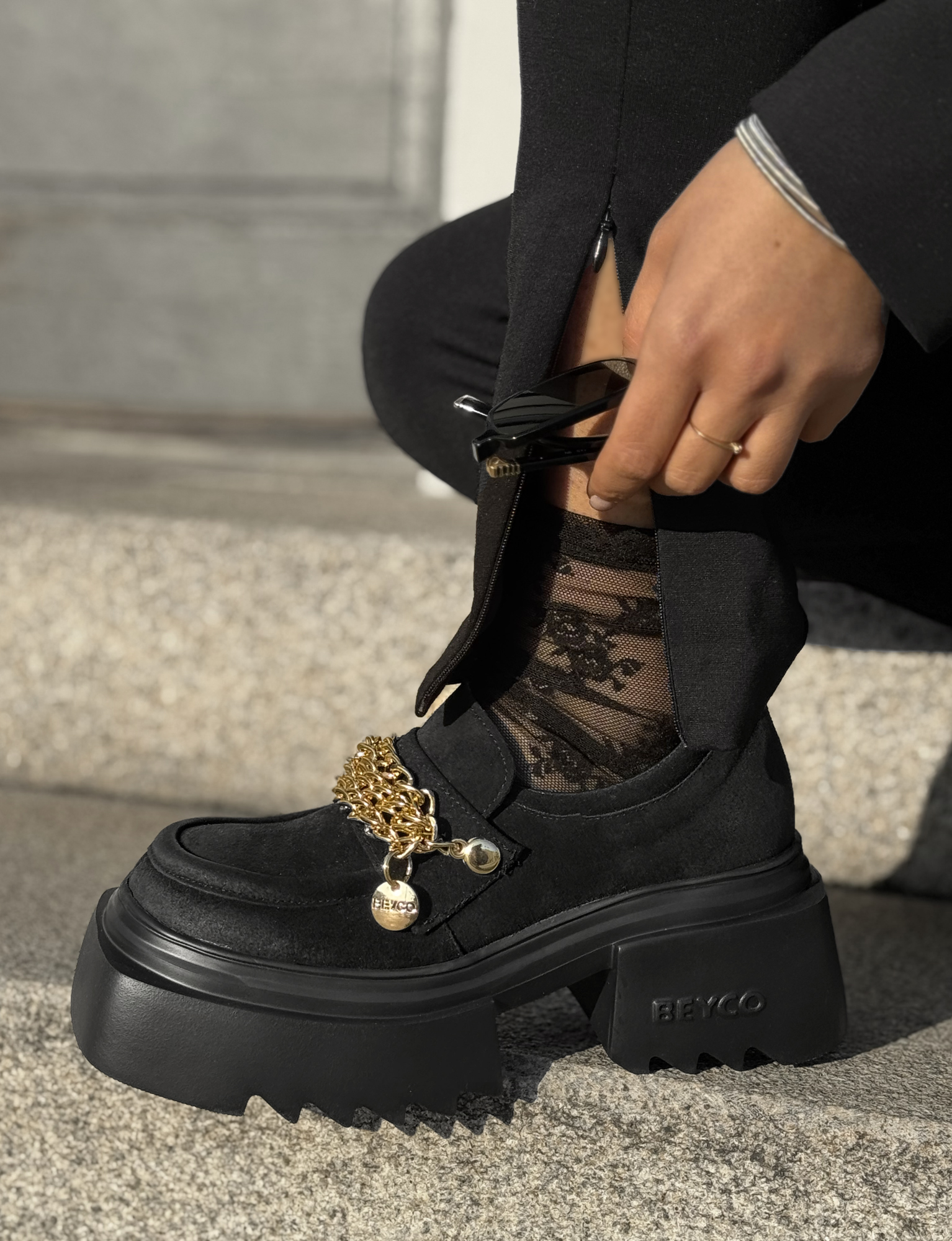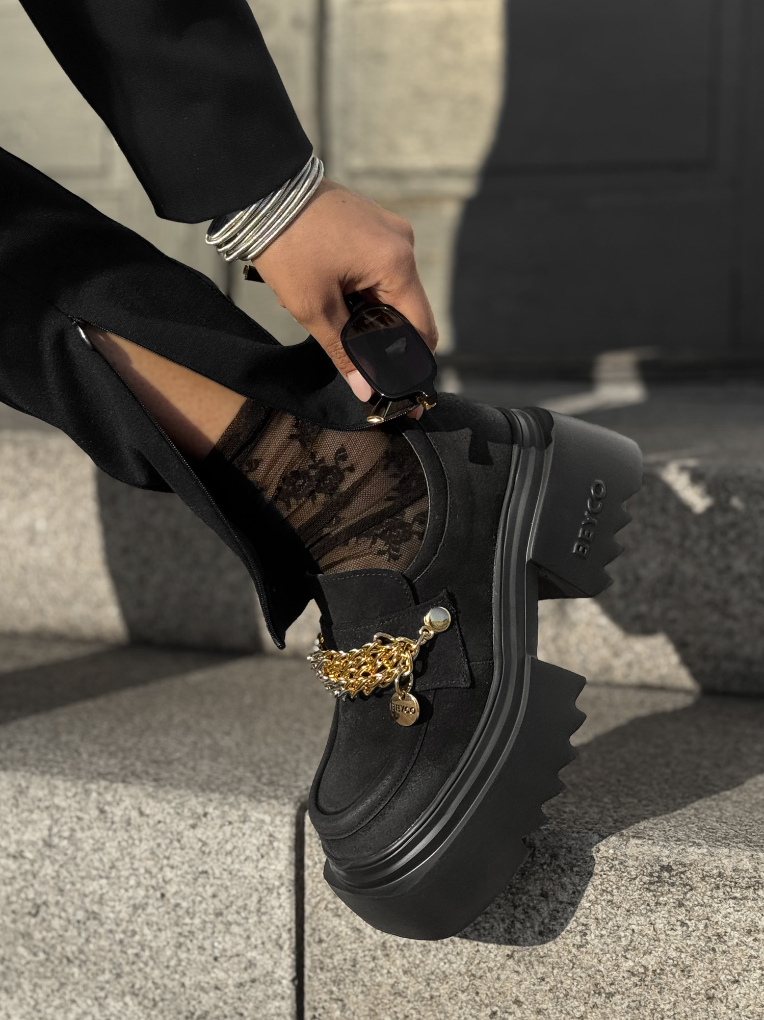Skórzane mokasyny na grubym spodzie 26-2 czarny zamsz