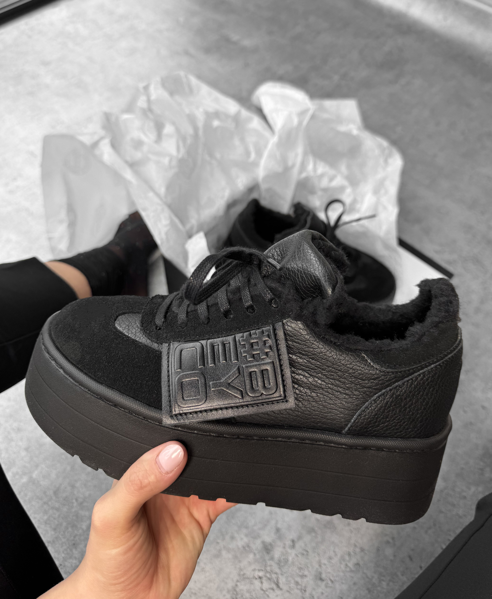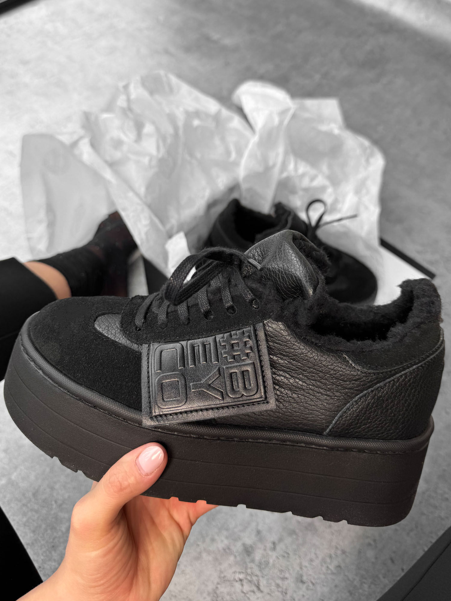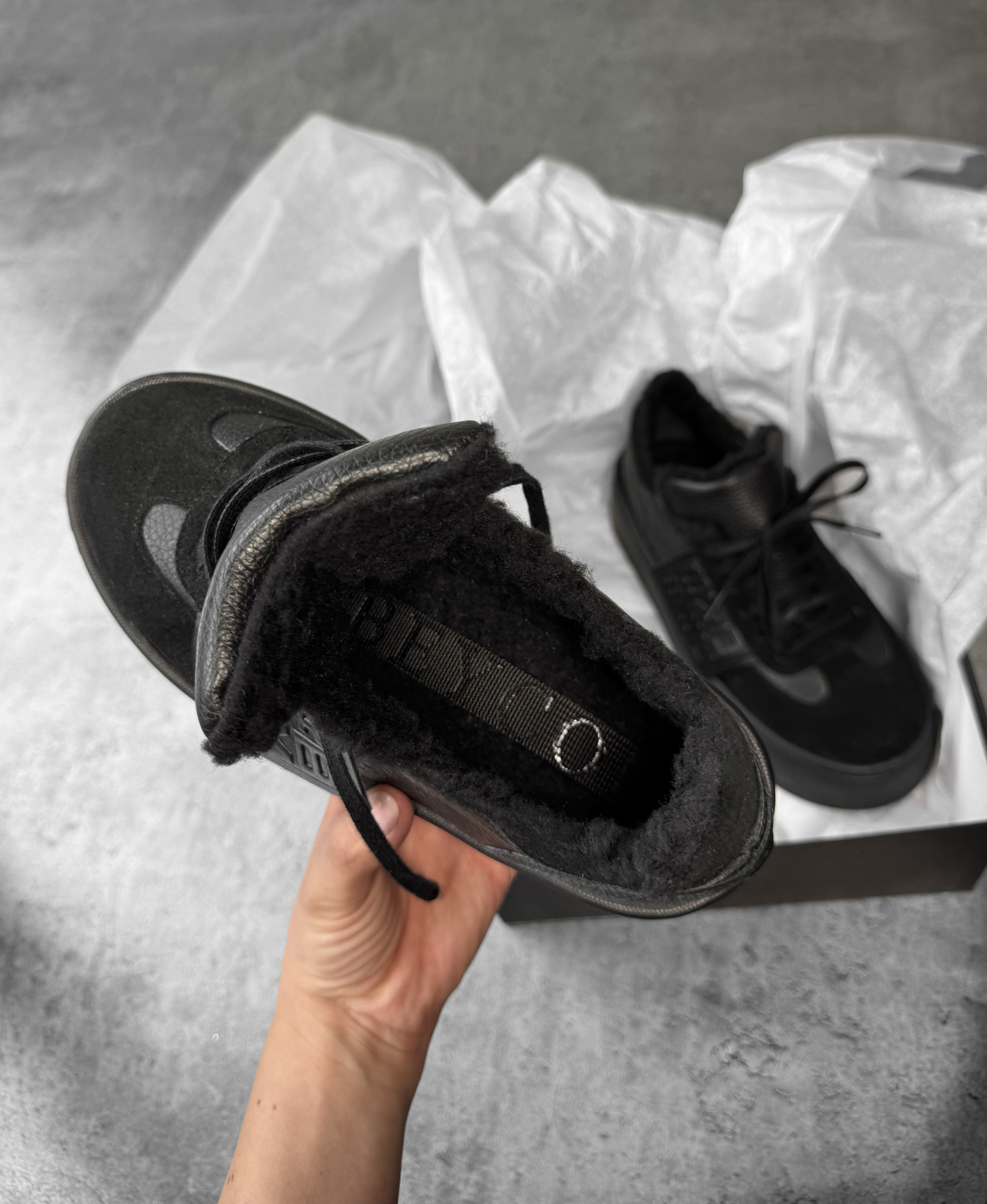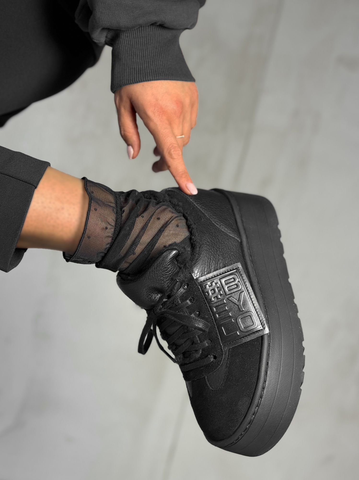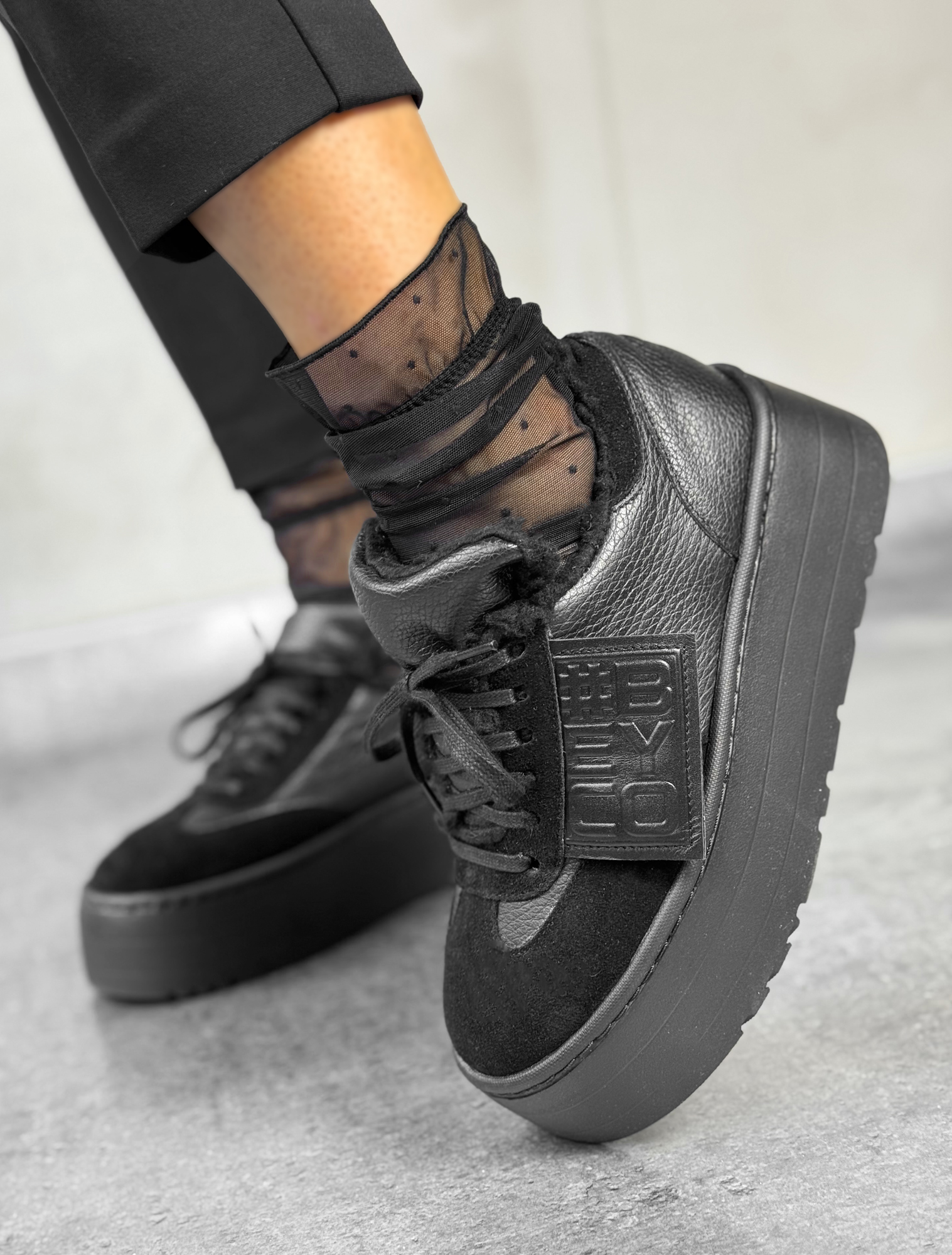 Skórzane ocieplone sneakersy z logo Beyco czarne 25-44K