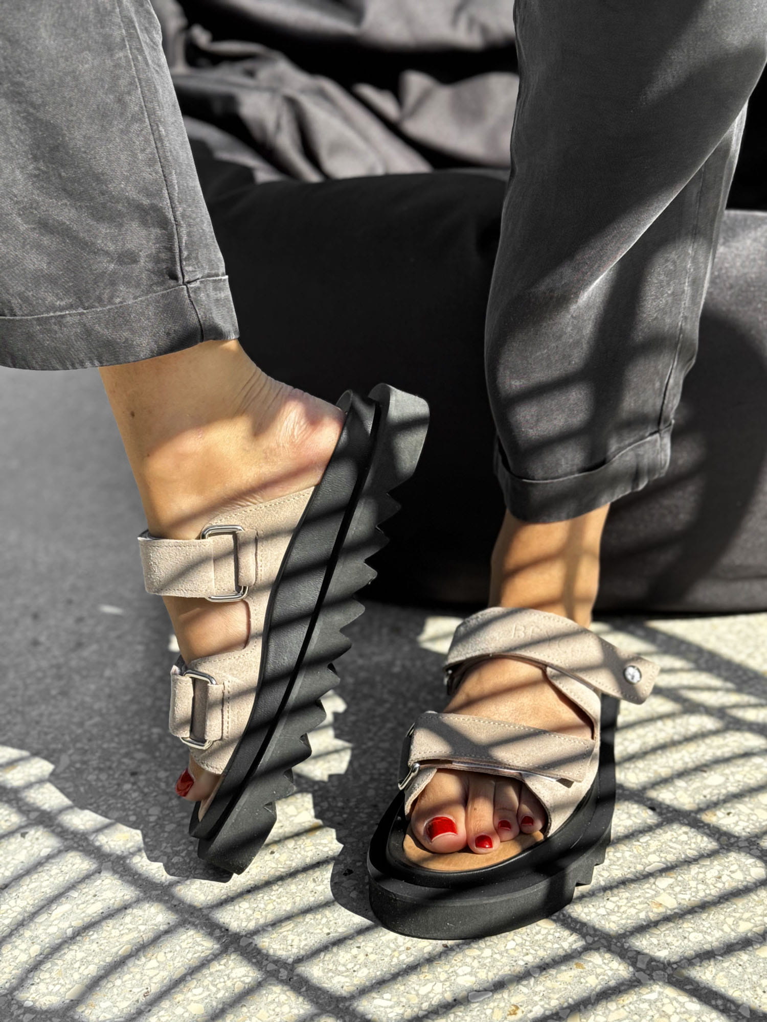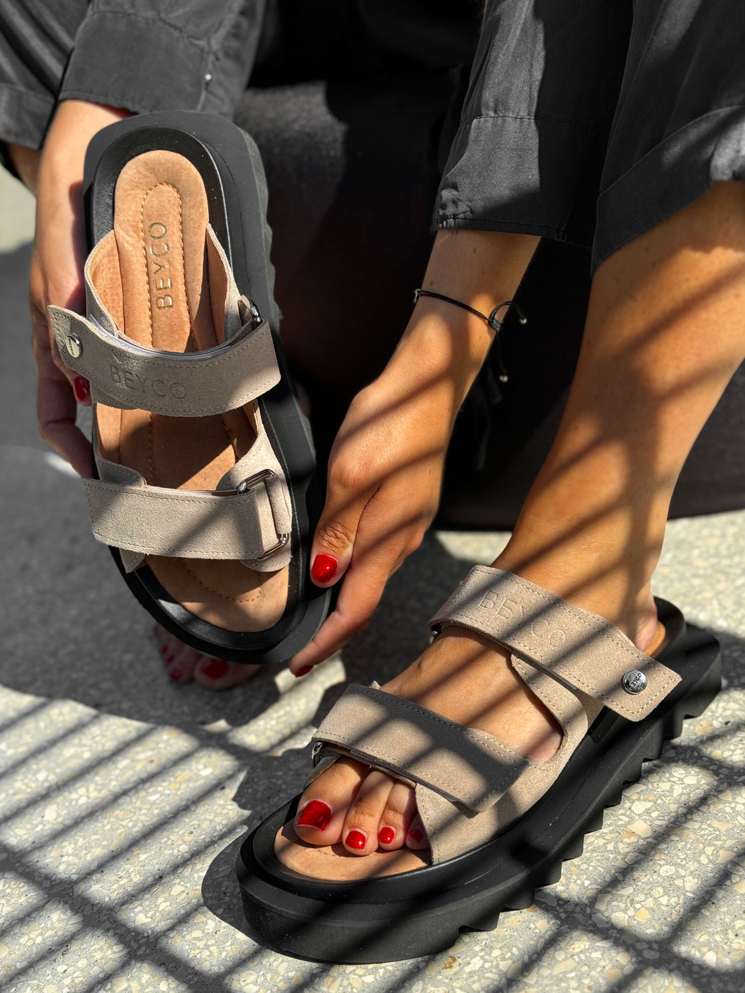 Skórzane sandały klapki gruby spód kl8 cappuccino Beyco