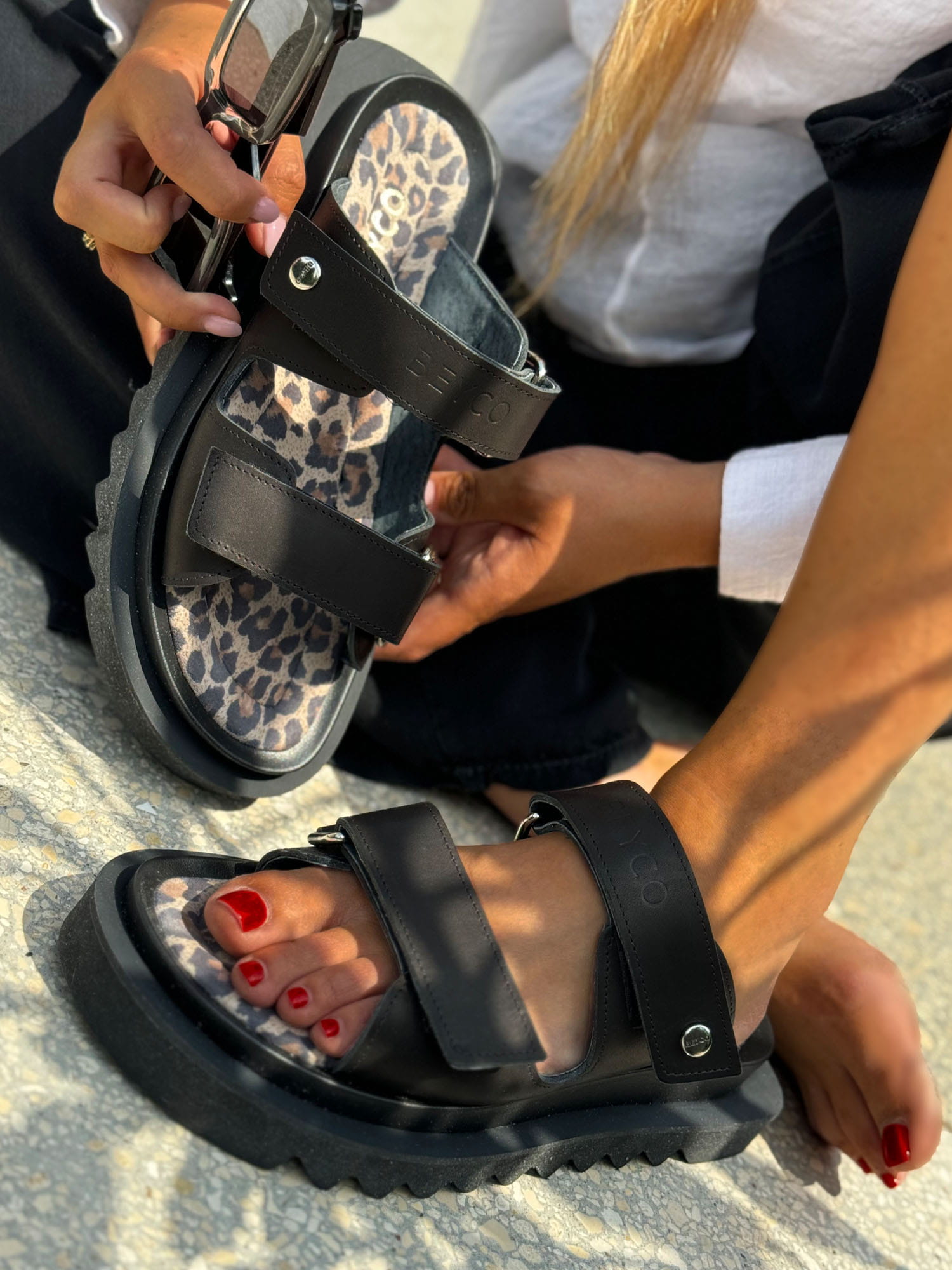 Skórzane sandały klapki gruby spód kl8 czarny Beyco