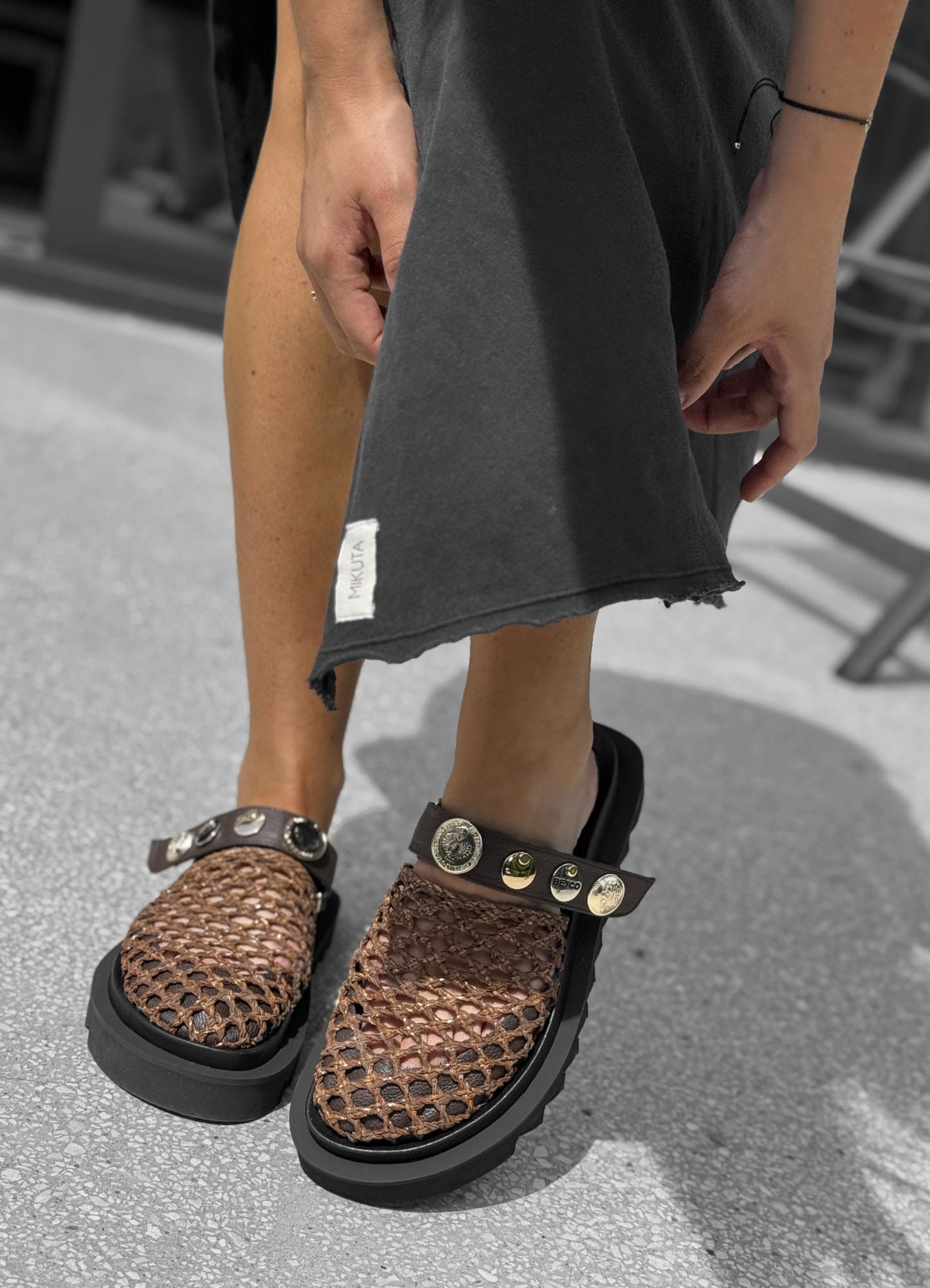 Brązowe klapki 25-17 na niskim obcasie to casualowy styl. Buty wykonane są z najwyższej jakości skóry naturalnej, co zapewnia im trwałość na lata. Klapki idealne na co dzień. Doskonale wpiszą się w sportowy, miejski look.