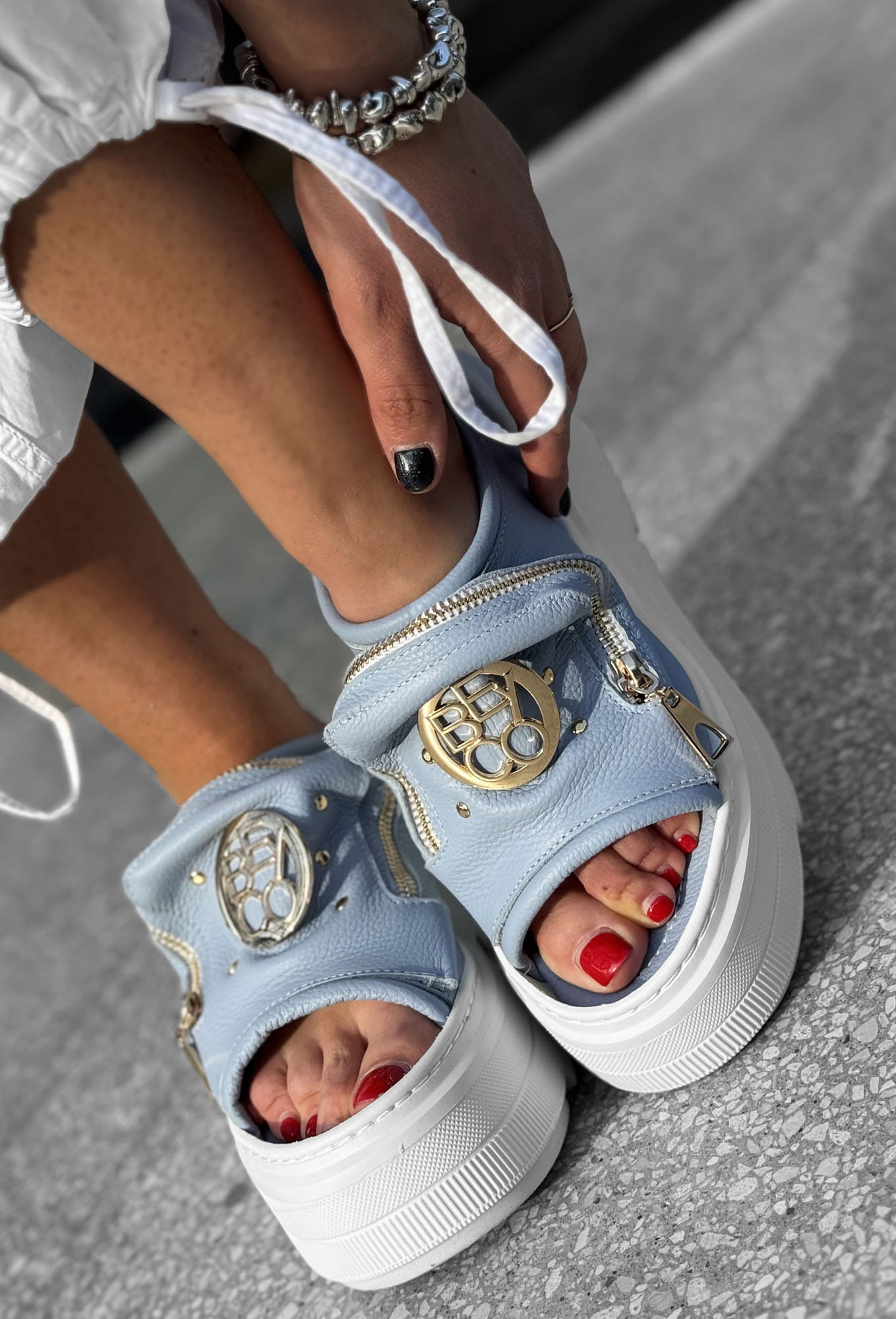 Skórzane sneakersy klapek gruby spód kl5 baby blue Beyco