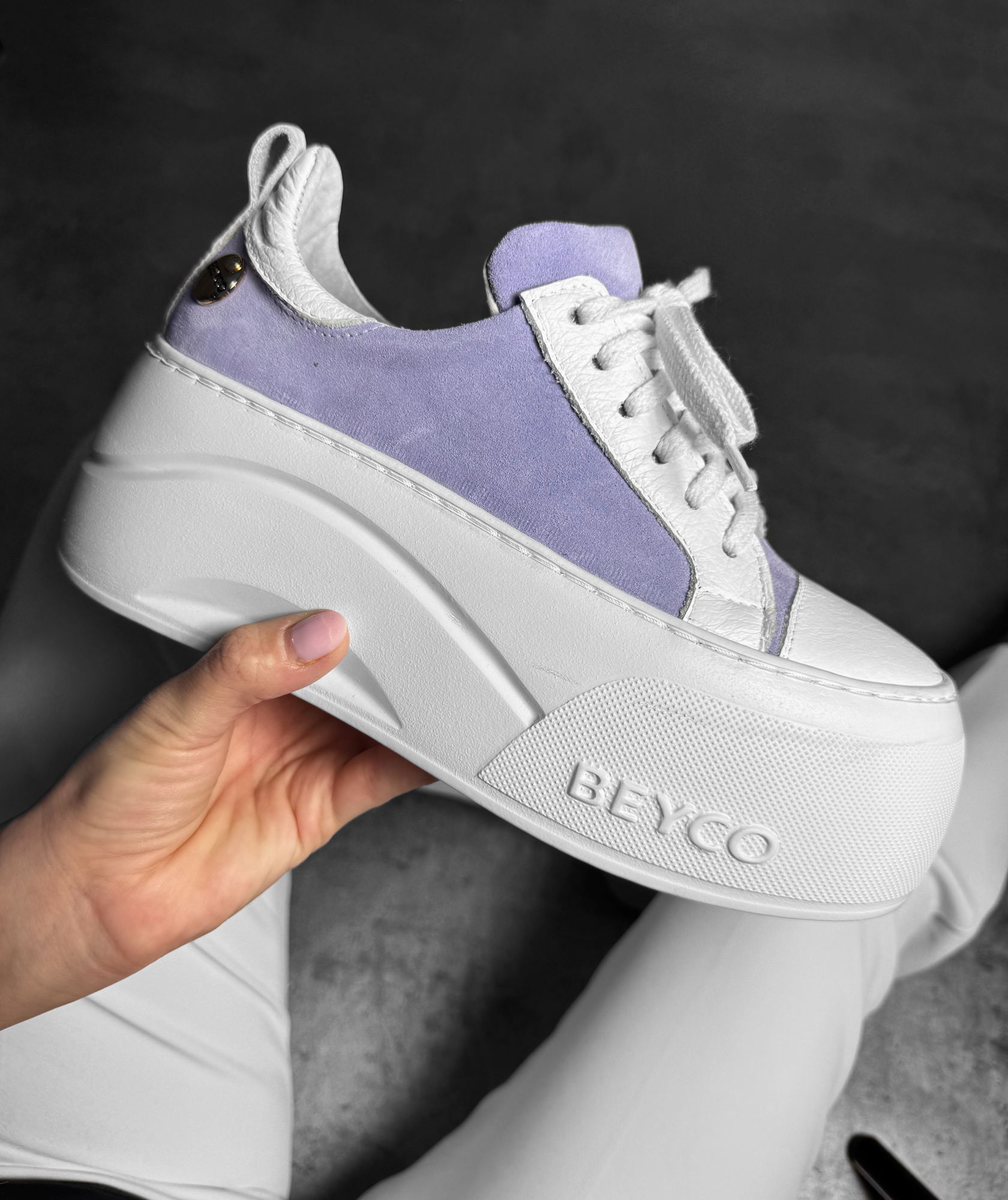 Skórzane sneakersy na grubym spodzie z logo Beyco lila 25-26