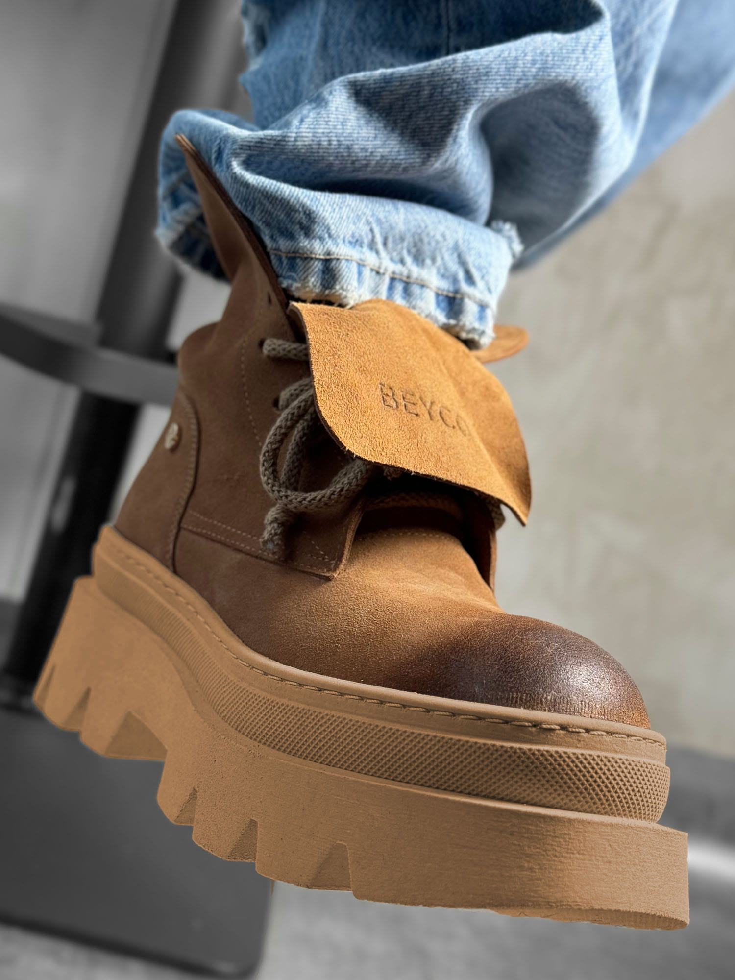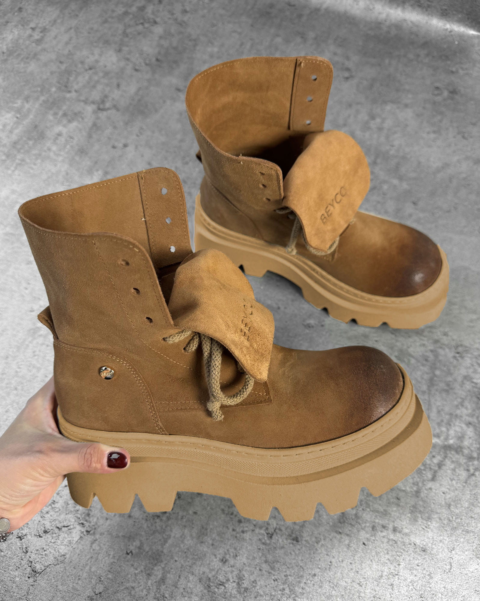 Workery na grubej podeszwie Ital7 to nowoczesna propozycja od Beyco. Najwyższej jakości zamszowa skóra naturalna w ciepłym kolorze nadaje niepowtarzalny wygląd. Workery od Beyco to propozycja dla kobiet, które pragną wysmuklić swoją sylwetkę, a jednocześnie czuć się komfortowo. Wysokość obcasa jest praktycznie nieodczuwalna, dlatego workery są świetną propozycją na co dzień.
