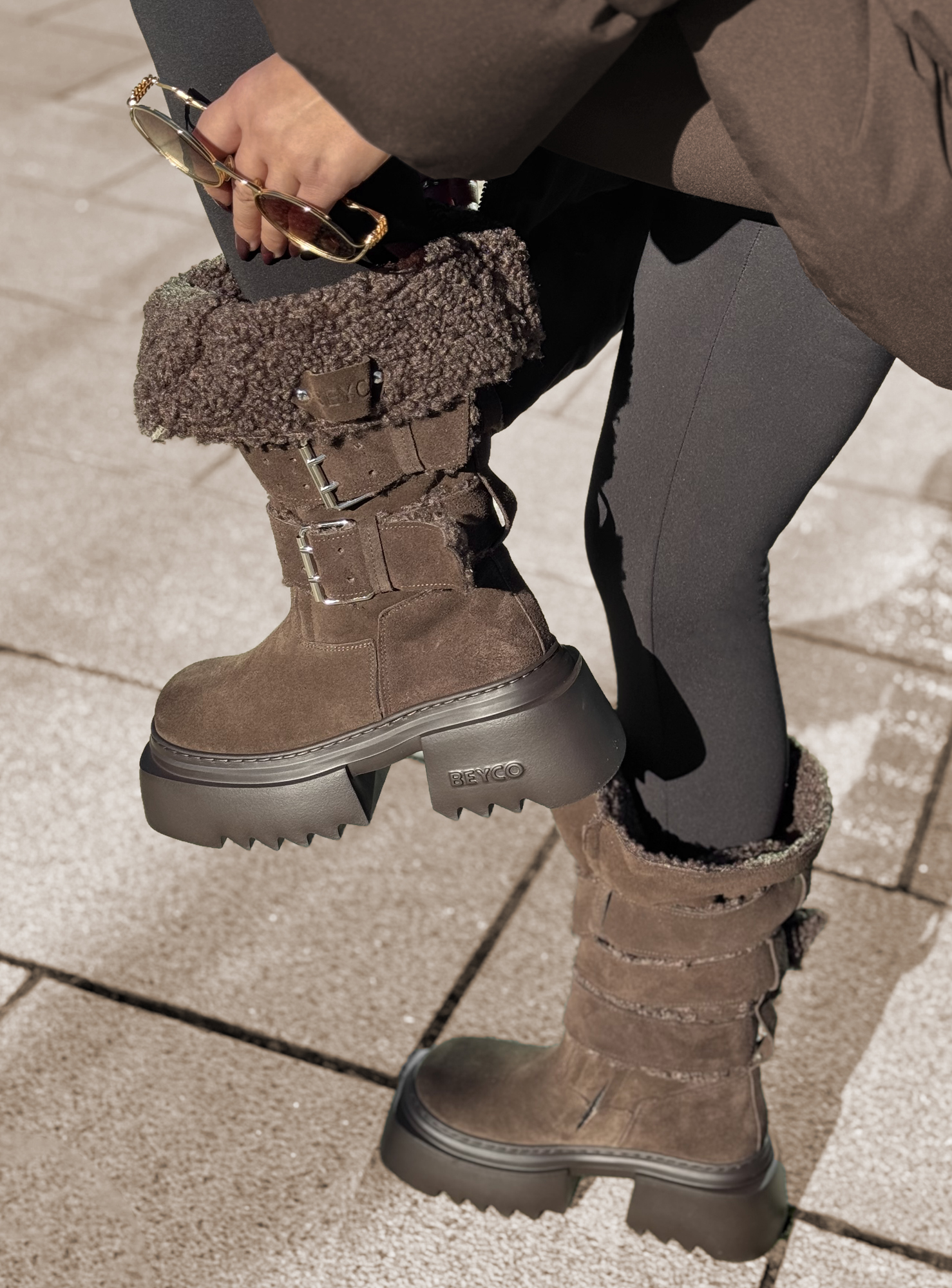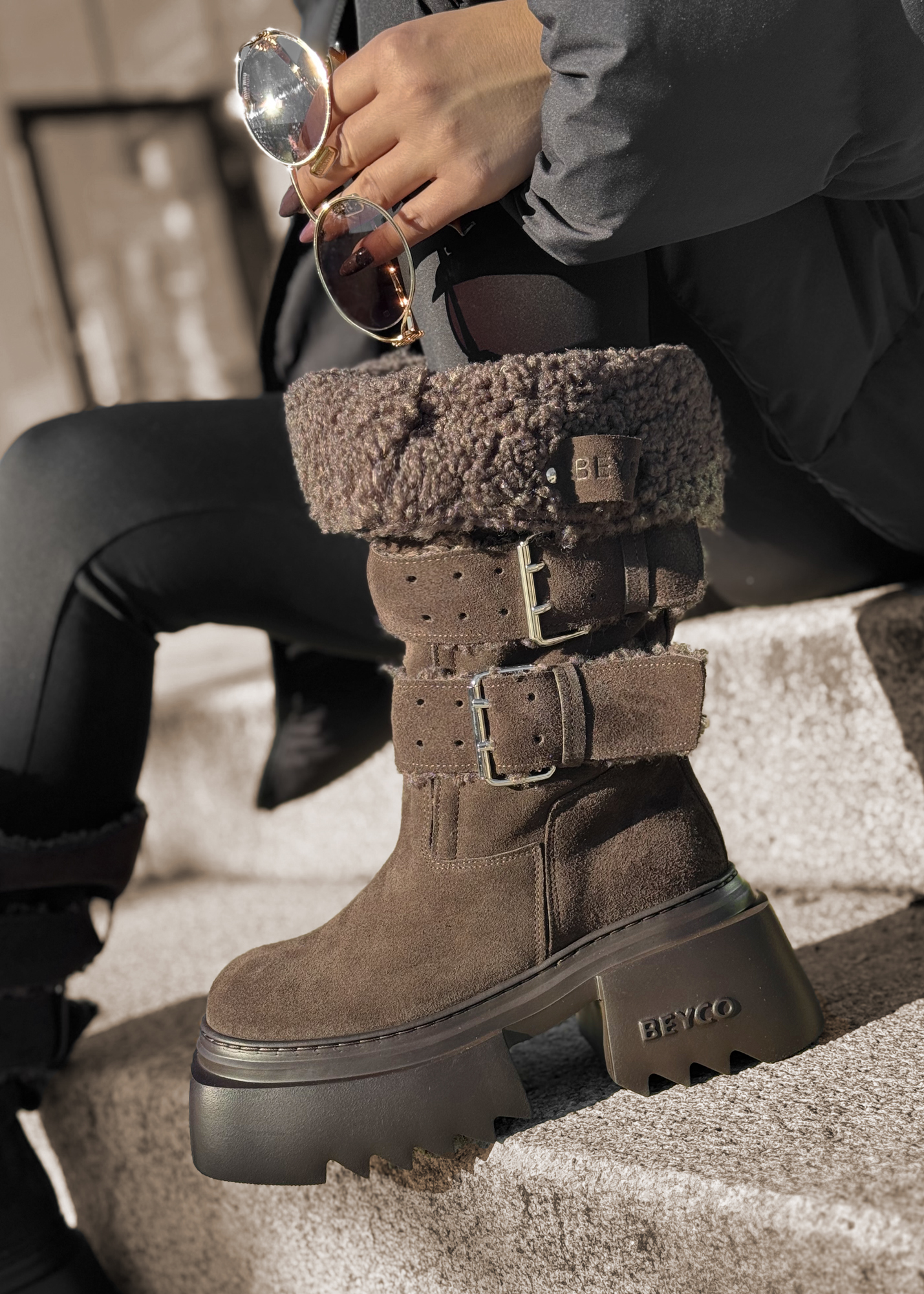 Skórzane workery na grubych spodach z logo 25-28k brąz Beyco